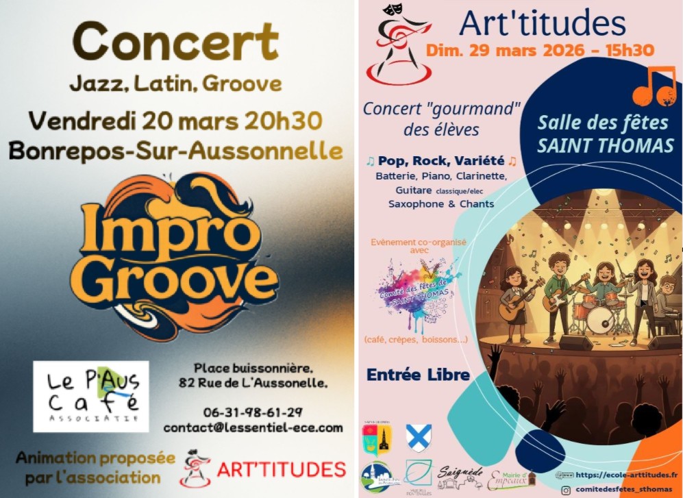 L’équipe ART’TITUDES organise deux concerts fin mars à BONREPOS puis à SAINT-THOMAS :